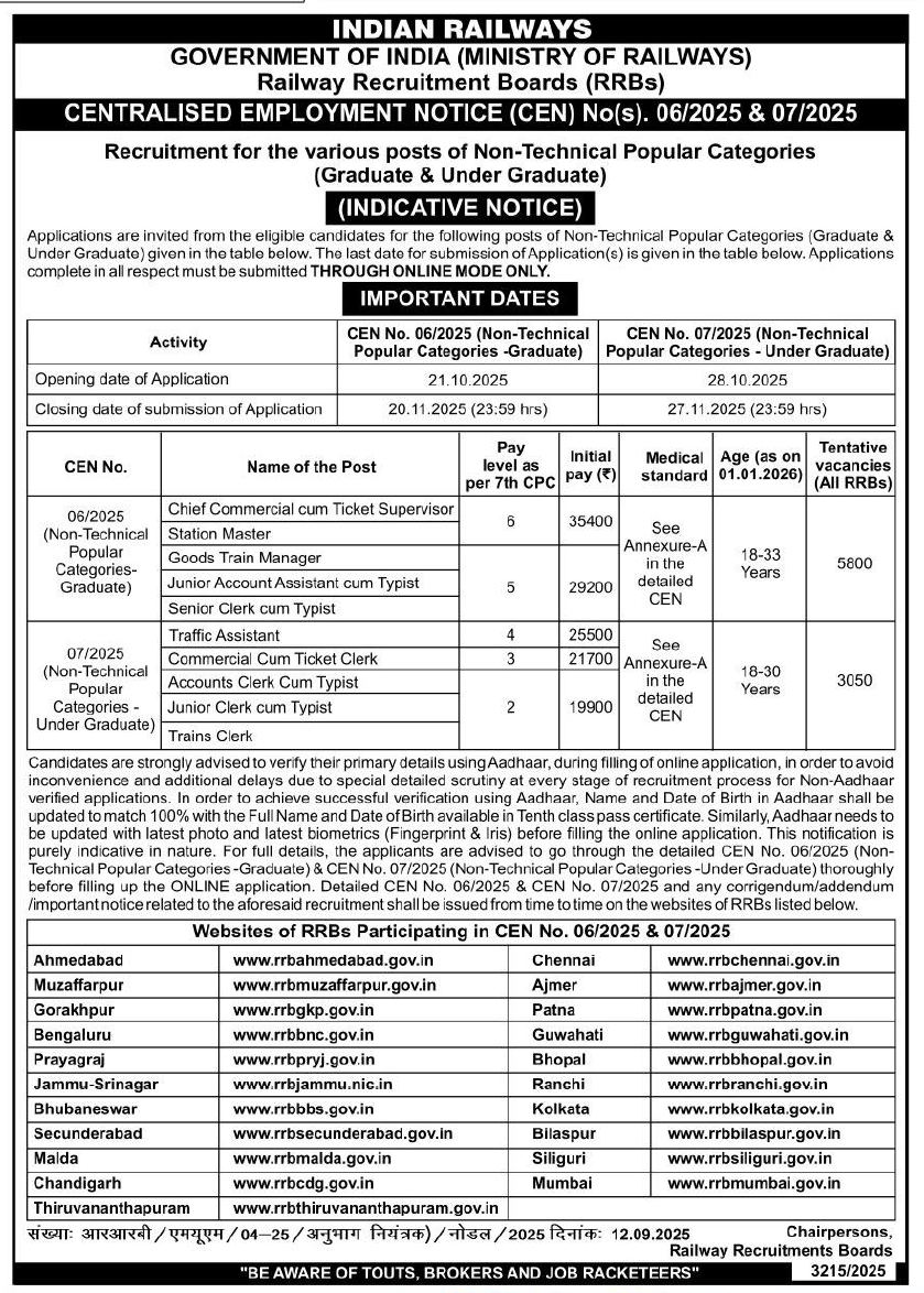 Date | All Notices of CEN 07/2025 (NTPC-Undergraduate) |